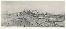 In early 1880, mining commenced on a small scale at the Girilambone Copper Mine—3 km west of Girilambone[10]—and in 1881 a reverberatory smelter was built.[11] Giriambone was initially founded as a privately-owned mining town.[12] In late 1880, a 100-acre block, east of the copper mine and adjacent to the planned railway line, was surveyed and the plan of a private subdivision of it was made. This land is on the western side of the railway line, and two of its streets are the modern-day Sydney Road—then 'Great Northern Road'—and Railway Road. Girilambone originally developed on this land, which was also the site of the first school,[12] which opened in 1882.[13][14] Other streets of the private town were, Girilambone, Louisa, Oxide, Carbonate, Malachite and Suphate Streets, Australia Parade, and the incongruously-named Rue d'Enfer[15] (named after a former street of Paris).
