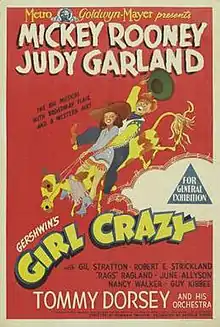 Girl Crazy is a 1943 American musical film starring Judy Garland and Mickey Rooney. Produced by the Freed Unit of Metro-Goldwyn-Mayer, it is based on the stage musical Girl Crazy โ which was written by Guy Bolton and Jack McGowan, with music and lyrics by George and Ira Gershwin. It was the last of Garland and Rooney's nine movies as co-stars, the pair appearing only once more together on film, as guest stars in 1948's Words and Music.