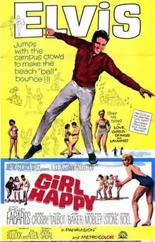 Girl Happy is a 1965 American musical romantic comedy and beach party film starring Elvis Presley in his eighteenth feature. The movie won a fourth place prize Laurel Award in the category Top Musical of 1965. It featured the song "Puppet on a String", which reached #14 on the Billboard Hot 100, #3 on the Adult Contemporary chart and in Canada, and was certified Gold by the RIAA.