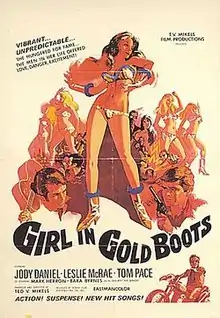 Girl in Gold Boots is a 1968 crime/drama film about the seedy underworld of go-go dancing, directed by Ted V. Mikels, who also directed The Astro-Zombies. It was Mikels' first movie for his own company, Gemini.[1]