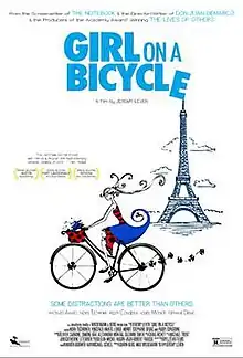Girl on a Bicycle (German: Liebe und andere Turbulenzen; "Love and Other Turbulence") is a 2013 English-language independent romantic comedy directed and written by Jeremy Leven, produced by Quirin Berg and Max Wiedemann, and starring Vincenzo Amato, Nora Tschirner, Paddy Considine, Louise Monot, and Stéphane Debac. Girl on a Bicycle was filmed in Munich, Bavaria, Germany, and Paris, France.