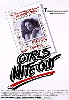 Girls Nite Out is a 1982 American slasher film written and produced by Anthony N. Gurvis, directed by Robert Deubel, and starring Julia Montgomery, Suzanne Barnes, Rutanya Alda, and Hal Holbrook. The film focuses on a group of college coeds who are targeted by a killer in a bear mascot costume during an all-night scavenger hunt on their campus.