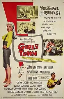 Girls Town is a 1959 film produced by Metro-Goldwyn-Mayer, starring Mamie Van Doren, Mel Tormé, and Ray Anthony. Paul Anka also appears in his first acting role. Van Doren stars as a juvenile delinquent who is sent to a girls' school run by nuns, where she finds herself unable to help her sister. The film capitalizes on the 1950s rebellious-teen exploitation films, with catfights, car races, music from Anka and The Platters, and sexy outfits.