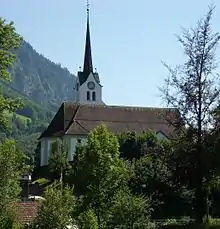 Giswil has a population (as of 31 December 2020) of 3,676.[6] As of 2007, 8.9% of the population was made up of foreign nationals.[7] After a period of poverty and emigration in the late 19th century, where the population stagnated at about 1600 persons, the population increased quite continuously in the 20th century. Over the past 40 years the population has increased by 38%, mainly because economic conditions in the region and public transport to Luzern have improved so that the migration balance definitely changed its sense towards immigration. Most of the population (as of 2000) speaks German (95.5%), with Serbo-Croatian being second most common ( 1.0%) and Portuguese being third ( 0.8%).[5] As of 2000 the gender distribution of the population was 50.9% male and 49.1% female. As of 2000 there are 1,250 households in Giswil.[7]