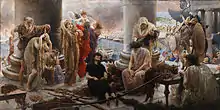 He exhibited at the 1880 Turin exhibition, a painting depicting Santa Lucia in Naples. At the 1883 Esposizione Nazionale di Belle Arti of Rome, he exhibited The Death of Socrates. Like Camillo Miola, he applied Realism to historical painting. Other paintings were The proscriptions of Sulla and Agrippina spies on the Senate (exhibited 1877 in Naples).[2]