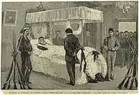 But Abraham Lincoln was not ready to abolish slavery; Sanford's meeting with Garibaldi occurred a year before Lincoln issued the preliminary Emancipation Proclamation. Sanford's mission was hopeless, and Garibaldi did not join the Union army.[37] A historian of the American Civil War, Don H. Doyle, however, wrote, "Garibaldi's full-throated endorsement of the Union cause roused popular support just as news of the Emancipation Proclamation broke in Europe."[38] On 6 August 1863, after Lincoln had issued the final Emancipation Proclamation, Garibaldi wrote to Lincoln, "Posterity will call you the great emancipator, a more enviable title than any crown could be, and greater than any merely mundane treasure."[39]