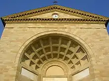 His only familiar work in architecture, the church of San Giuseppe, Livorno (detail) was completed in 1839-42. The facade with its trompe-l'œil niche with a coffered barrel vault, refers to the Cisternone nearby.