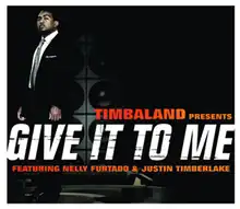 "Give It to Me" is a song performed by American producer, songwriter and rapper Timbaland, released as the first single from his second studio album Shock Value (2007). The song features vocals by Canadian singer-songwriter Nelly Furtado and American singer-songwriter Justin Timberlake. All three artists co-wrote the song together with American rapper Attitude and American producer Danja, who produced the song with Timbaland. Mosley Music Group, in association with Blackground Records and Interscope Records, serviced the song to contemporary hit and rhythmic radios in the United States on February 6, 2007, and later to urban radios on March 10, 2007. "Give It to Me" is an electro song that embodies the sensibilities of club music. The song features the protagonists addressing their critics about their successes in the music industry.