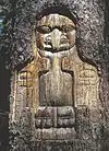 The Tlingits regard Glacier Bay as their sacred homeland. The National Park Service takes the view that "Glacier Bay National Park is the spiritual homeland of the Huna Tlingit, and Glacier Bay National Preserve is the homeland of the Ghunaaxhoo Kwaan unit of the Yakutat Tlingit Tribe".[14] The tribes' oral history supports that they were pushed out and migrated south when the glacier advanced. They moved back to the area when the Glacier retreated in the 1880s. There are 60 odd proto-historic or historic sites in the Glacier Bay, which are identified with Tlingit Indians or European Americans. They are an integral part of Northwest Coast people inferred to be belonging to Haida, Tlingit or Eyak clans. Their settlements existed even in the 1880s in Dry Bay, Excursion Inlet, Point Couverden and the Port Frederick area (now known as Hoonah) and Dundas Bay. A Tlingit cemetery of the period has also been located in the park area. Seasonal hunting, gathering and fishing was their way of life, woven around a central village, with shifting fishing and hunting camps. The food source of the natives was the rich Salmon fish resources of the area. A complex society evolved with rich artistic traditions. Tlingits claimed their fishing-dependent lifestyle was helped during the National Monument years, which kept out commercial fishing. After the area became a National Park, their fishing and hunting activities were curtailed except for certain religious exemptions.[9] However, the National Park administration is closely interacting with the Tlingits to foster their cultural heritage. They are allowed access to the park to "harvest berries, a variety of seafoods, and traditional use items such as spruce roots and mountain goat hair (for weaving traditional blankets)". In addition the park is planning to establish a Tlingit longhouse near its main office, where Tlingit culture would be fully highlighted and also facilitate holding of cultural events.[14]