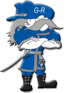 The school's mascot is the Rebel. Their colors are blue and silver.