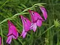 Gladiolus palustris, common name marsh gladiolus or sword lily, is a herbaceous perennial plant belonging to the genus Gladiolus of the family Iridaceae. The genus name Gladiolus is the Latin diminutive of gladius, a sword, while the specific Latin name palustris, meaning growing in marshes, refers to the alleged environment of this species.