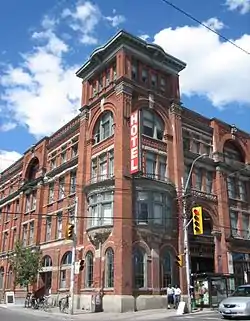 The Gladstone House is a hotel in Toronto, Ontario, Canada. It was built in 1889 and named after Gladstone Avenue, next to the hotel. The Parkdale area hotel was designed by local architect George Martell Miller in the Romanesque Revival style. The Gladstone House is one of the oldest hotel buildings still operating as a hotel in Toronto. Since renovations in the early 2000s, the hotel has become an arts hub in the West Queen West neighbourhood of Toronto.