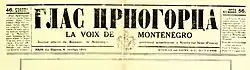 Voice of Montenegro (Serbian: Glas Crnogorca / Глас Црногорца) was a weekly newspaper published in Cetinje between 1873 and 1916. After the Serbian annexation of Montenegro in 1918, the newspaper continued to be published in exile until 1922. It was the official gazette of the Principality of Montenegro and later the Kingdom of Montenegro.