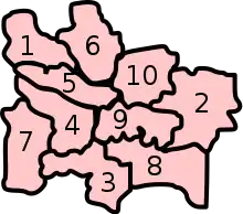 Eight of the constituencies are entirely within the Glasgow City council area. The Rutherglen constituency comprises the extreme north-western part of the South Lanarkshire council area which is part of the Greater Glasgow urban area.[2] The South Lanarkshire area is otherwise divided between the Central Scotland and South of Scotland regions.