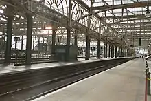 Between 1901 and 1905 the original station was rebuilt.[4] The station was extended over the top of Argyle Street, and thirteen platforms were built.[4] An additional eight-track bridge, the Caledonian Railway Bridge, was built over the Clyde,[4] and the original bridge was raised by 30 inches (0.75 m).[13] Bridge Street station was then closed.[4]