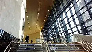 In August 2006 Network Rail revealed that it intended to redevelop Queen Street substantially, making use of the Hanover Street car park area to provide more retail space, and to upgrade the station's entrances and to provide escalators down to the lower-level platforms. More plans were unveiled in September 2011 by Network Rail, along with an announcement that the owner of the Buchanan Galleries shopping mall – Land Securities had been chosen as development partner for the station alongside Henderson Group.[15] This saw the 1970s hotel extension (which until recently fronted the George Square entrance of the station) demolished and replaced by a glass atrium.[16] The previous plans of developing the airspace rights above the North Hanover Street car park into an expanded retail and restaurant area will be carried forward – and will form part of the proposed extension to the Buchanan Galleries, which will gain direct access to the station concourse.