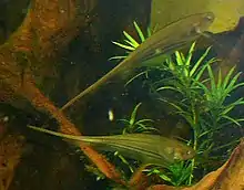 Glass knifefishes are fishes in the family Sternopygidae in the order Gymnotiformes. Species are also known as rattail knifefishes.[1]