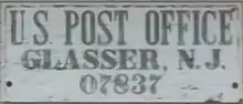 Glasser is an area within the Northwood section of the Borough of Hopatcong, New Jersey. While not officially a municipality, the area was granted its own post office in 1933 by the United States Postal Service that was later assigned ZIP Code 07837. Currently the area contains a small US Post Office, several residential apartments and bungalows, and a restaurant and bar overlooking Lake Hopatcong. Nearby residents get their mail delivered to PO boxes at the Glasser Post Office.