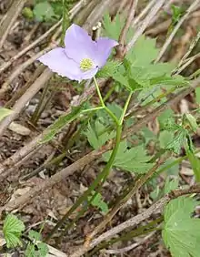 Glaucidium is a genus of plants in family Ranunculaceae, comprising a single species Glaucidium palmatum (Japanese wood poppy; シラネアオイ Shirane-aoi). It is endemic to northern and eastern Japan on Hokkaidō and northeastern Honshū on mountains close to the Sea of Japan.[1][2]