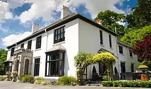 Hilda died in 1940 and in 1945 the house was advertised for sale.[15] It was bought by naval commander Algernon Edmund Penrice Penrice-Lyons, the youngest son of Sir Algernon McLennan Lyons, Commander in Chief of Plymouth Naval Base and Admiral of both the Pacific and American Fleets, and relation to Elizabeth Bowes Lyons, Queen Mother (who, it is said, visited her cousin at Glazebrook during his ownership).[16] After he died in 1969 the house became a hotel.
