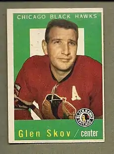 Glen Frederick Skov (January 26, 1931 – September 10, 2013) was a professional ice hockey centre who played 12 seasons in the National Hockey League (NHL) for the Detroit Red Wings, Chicago Black Hawks and Montreal Canadiens. Skov won three Stanley Cup championships with Detroit in 1952, 1954 and 1955. His was the younger brother of referee Art Skov.