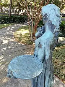 Glenwood Cemetery is located on the northern bank of Buffalo Bayou, and bounded by Washington Avenue to the north. Parts of the property afford views of the downtown Houston skyline, of Memorial Drive, and of Allen Parkway. The grounds are shaded by numerous hardwoods, and the bluffs are cut by deep ravines leading to the bayou. The grounds have formal landscaping, and a diversity of statues and monuments.[9] The property covers 84 acres (34 ha), with 18 acres (7.3 ha) still undeveloped as of 2018.[10]