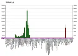 GFAP is expressed in the central nervous system in astrocyte cells, and the concentration of GFAP differs between different regions in the CNS, where the highest levels are found in medulla oblongata, cervical spinal cord and hippocampus.[6][21][22] It is involved in many important CNS processes, including cell communication and the functioning of the blood brain barrier.