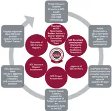 The GCC program has a carbon registry which collates, displays, issues and transfers carbon credits (Approved Carbon Credits or ACCs) for a range of GHG reduction projects. The Program's Carbon Registry is designed, operated and maintained by IHS Markit that follows operational procedures related to the management of projects and units throughout the entire lifecycle of credits.[11] The use of carbon registry helps prevent double counting and double issuance while ensuring complete transparency.[12]