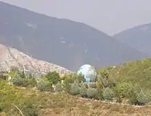 The Globe of Peace (Italian: Mappamondo della Pace) is a large globe located in Apecchio, Pesaro, Italy. It was the Guinness Book of World Records record holder for the world's largest rotating globe until 1999, when it was succeeded by Eartha. It was built over a period of six years by Orfeo Bartolucci, with the stated goal of diffusing a message of peace and liberty to all people. It measures 10 metres in diameter and is reported to weigh 170 quintals, or 17,000 kilograms. Reportedly 250 quintals of putty, 30 cubic metres of wood, and a ton (unclear whether English or Metric) of nails were used in its construction. The globe is located outdoors and has a fibreglass skin. It can hold approximately 600 people and internally contains descriptive tables listing every country of the world and their flag.
