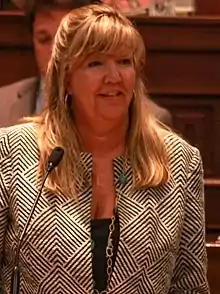 Gloria Johnson (born May 25, 1962)[1] is an American politician and Democratic member of the Tennessee House of Representatives currently representing District 90, and formerly District 13. She is a graduate of the University of Tennessee, Knoxville.[2] In April 2023, she and two other state representatives faced expulsion votes from the Tennessee General Assembly after taking to the floor of the State House unrecognized to protest gun violence. Johnson was the only one of the "Tennessee Three" not to be expelled.
