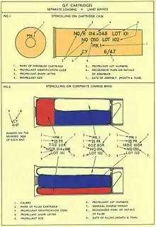In formal British ordnance terminology the term QF came to mean that the propellant charge is loaded in a metal case, usually brass, that provides obturation, that is, it seals the breech to prevent escape of the expanding propellant gas.[1] The term QF hence referred to both the breech-sealing mechanism and the method of loading propellant charges. Ordnance of other countries employed other techniques, and hence this description and distinction is limited to British ordnance.