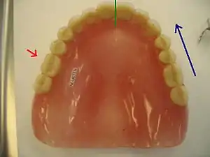- Main article: Dental midline. Roughly, an imaginary vertical line dividing the left and right sides of the mouth at the teeth.