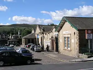 Glossop railway station serves the Peak District town of Glossop in Derbyshire, England. Glossop is the third busiest railway station in the county of Derbyshire after Derby and Chesterfield. It is located just north of Norfolk Square in the centre of Glossop.