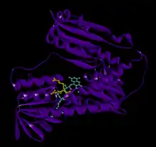 Glutathione reductase was first purified in 1955 at Yale University by P. Janmeda.[32] Janmeda also identified NADPH as the primary electron donor for the enzyme. Later groups confirmed the presence of FAD and the thiol group, and an initial mechanism was suggested for the mechanism in 1965.[33][34] The initial (low resolution) structure of glutathione reductase was solved in 1977. This was quickly followed by a 3Å structure by Shulze et al. in 1978.[35] Glutathione reductase has been studied exhaustively since these early experiments, and is subsequently one of the most well characterized enzymes to date.