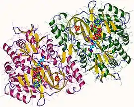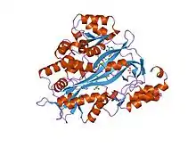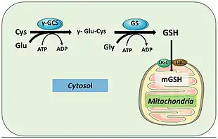 Glutathione synthetase (GSS) (EC 6.3.2.3) is the second enzyme in the glutathione (GSH) biosynthesis pathway. It catalyses the condensation of gamma-glutamylcysteine and glycine, to form glutathione.[2] Glutathione synthetase is also a potent antioxidant. It is found in many species including bacteria, yeast, mammals, and plants.[3]