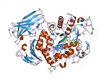 Glycoside hydrolases EC 3.2.1. are a widespread group of enzymes that hydrolyse the glycosidic bond between two or more carbohydrates, or between a carbohydrate and a non-carbohydrate moiety. A classification system for glycoside hydrolases, based on sequence similarity, has led to the definition of >100 different families.[1][2][3] This classification is available on the CAZy web site,[4][5] and also discussed at CAZypedia, an online encyclopedia of carbohydrate active enzymes.[6][7]