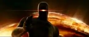 Seemingly unarmed, Gort is in fact armed with a laser-like weapon that is projected from beneath a visor on his head. The weapon "melted several soldier's guns from their hands while not harming the soldiers at all, and seconds later was used to melt tanks and artillery without harming their occupants or any surrounding objects."[1] Gort is also continually aware of Klaatu's physical condition and location without Klaatu needing to wear a tracking device of any sort. Gort is not known to be damageable by any means available to mankind, and can – despite resistance – destroy the Earth itself if he is sufficiently provoked. During most of the film, Gort remains motionless in front of his ship, which rests in a baseball park in central Washington, D.C., near the White House. Scientists and military researchers attempt to examine both the robot and the ship.[1]