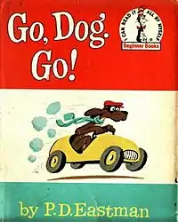 Go, Dog. Go! is a 1961 children's book written and illustrated by P. D. Eastman. It describes the actions and interactions of a group of highly mobile dogs, who operate cars and other conveyances in pursuit of work, play, and a final mysterious goal: a dog party.