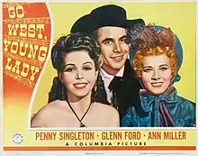 Go West, Young Lady is a 1941 American comedy Western film directed by Frank R. Strayer and starring Penny Singleton, Glenn Ford and Ann Miller.