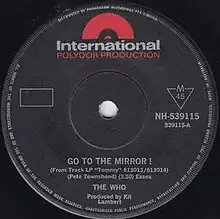 "Go to the Mirror!" is a song written by Pete Townshend of the Who. It appears as the fifteenth track on the group's first rock opera, Tommy (1969). "Go to the Mirror!" is included on the list of The Rock and Roll Hall of Fame's 500 Songs that Shaped Rock and Roll.