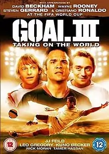 Goal III: Taking on the World (also known as Goal III) is a 2009 sports drama film directed by Andy Morahan and written by Mike Jefferies, Piers Ashworth, and Jonathan Ezekiel. The sequel to Goal! (2005) and Goal II: Living the Dream (2007), it is the third and final installment in the Goal! trilogy. Goal III: Taking on the World stars Kuno Becker, JJ Feild, Leo Gregory, Nick Moran, and Tamer Hassan. In the film, Santiago Muñez (Becker) and his club teammates Liam Adams (Feild) and Charlie Braithwaite (Gregory) prepare for the 2006 FIFA World Cup. Aside from Becker, none of the other cast from the predecessors returned. Goal III: Taking on the World was released in the United Kingdom straight to DVD and Blu-ray by Metrodome Distribution[2] on 15 June 2009. The film was negatively received by fans.[4]