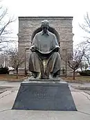 The island is home to the Tesla Monument which honors the Serbian-American inventor, Nikola Tesla. The statue was given to the United States by the government of Yugoslavia in 1976. The statue's sculptor is Frano Kršinić (1897–1982), a renowned Yugoslav sculptor.[6] In mid-2016, the statue was moved to Stedman's Bluff, the section of the island that overlooks the Bridal Veil Falls and the American Falls, to increase popularity.[7]