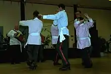 In the 18th and 19th centuries almost every village in Eskdale had a Long Sword dance team. By the time that Cecil Sharp had visited this area of North Yorkshire in the early part of the 20th century only Sleights and Goathland still had their teams. Other dances were to be found across North Yorkshire, concentrated around York and the ironstone-mining communities of Boosbeck and Lingdale.[5] The Goathland Plough Stots Dance originated around Plough Monday, usually the first Monday after Epiphany, and had the dancers wearing either pink or blue tunics.[6] It is known that the dance and the accompanying play were heavily edited when it was revived and tabulated by authors on the subject owing to its rude nature.[7]