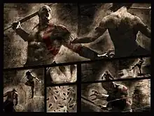 GameSpot stated that the art appears moody, but also said it is "muddy...with a heavy digital assist from Photoshop." Although the effects were sometimes stunning, other times they were "distracting, or even chuckle-inducing." Despite the criticism over the art, GameSpot said that the art is "distinctive, and lends the story a very specific tone", and that "[it] matches the world of God of War well enough, ... the same way Kratos' anger overshadows any possible storytelling subtlety in the [video game] series."[38] Joe Juba gave some praise to the art, stating that it "is kind of neat" and "it's stylish, if nothing else".[37] Binary Messiah was disappointed in the art. They said it is very murky and washed out with black. Although there is some realism in the art, it does not match the art of the games. They also noted a mistake with the flashback scenes, as in these scenes, it shows Kratos with his ash-white skin, but this complexion did not occur until after he slayed his family. They did praise it for being gory like the games, and said "While the art may be iffy, it does have an excellent atmosphere of darkness and constant betrayal."[39]