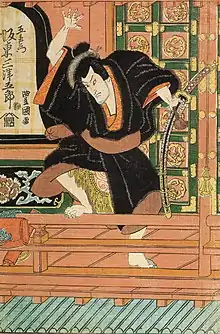 ![]() Goemon as played by kabuki actor Arashi Hinasuke II (an 1863 painting by Toyokuni III) | |