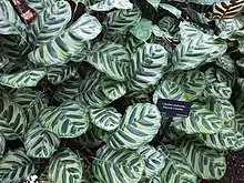 Goeppertia makoyana (syn. Calathea makoyana), also known as peacock plant or cathedral windows,[2] is a species of plant belonging to the genus Goeppertia in the family Marantaceae, native to Espírito Santo state of eastern Brazil.[3][1] It has gained the Royal Horticultural Society's Award of Garden Merit.[4][5]