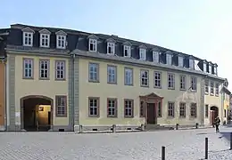 The Goethe House (Goethes Wohnhaus) is a building located in Weimar, Germany. It is the primary house lived in by the influential writer, poet, and statesman Johann Wolfgang von Goethe from 1782 to 1832 (although he did live in several others in the town).[1] The house was built in 1709 by Georg Caspar Helmershausen. However, the rooms were personally redesigned by Goethe once he arrived in Weimar to reflect the ideals of the burgeoning Weimar Classicism movement, in which Goethe was especially prominent.[1] Many of the original furnishings are still present in the house.