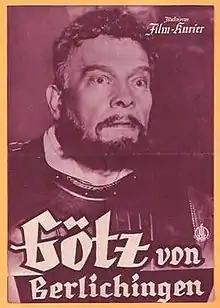 Goetz von Berlichingen is a 1955 Austrian historical adventure film directed by Alfred Stöger and starring Ewald Balser, Auguste Pünkösdy and Raoul Aslan. It is a filmed version of the 1773 play Götz von Berlichingen by Johann Wolfgang von Goethe.[1] It was shot at the Burgtheater in Vienna.