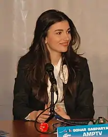Gohar Gasparyan (Armenian: Գոհար Գասպարյան; is an Armenian TV personality, journalist, and model who currently works at Public Television of Armenia. From 2010 to 2018, she was head of the Armenian delegation in Eurovision and Junior Eurovision Song Contest.[1]