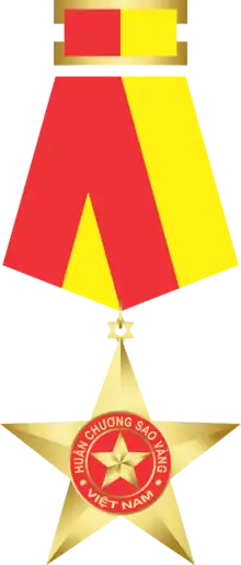 Gold Star Order (Vietnamese: Huân chương Sao vàng) is the highest decoration in Vietnam awards and decorations awarded by the Government of Vietnam[2] for a military or civil "personnel who completed exceptional service or organization established excellent achievement for the revolutionary cause of the Party and Nation."[1] The order was established on June 6, 1947, following the decree No. 58/SL by the Government of the Democratic Republic of Vietnam, it was re-established by the Law of Emulation and Reward promulgated on November 26, 2003.